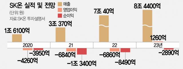 그러나 SK온이 기관투자가들에 발송한 투자설명서(IM)에서는 올해 매출을 7조 40억 원으로 예상하면서 영업손실 6860억 원, 당기순손실 8390억 원을 각각 전망한 것으로 나타났다.