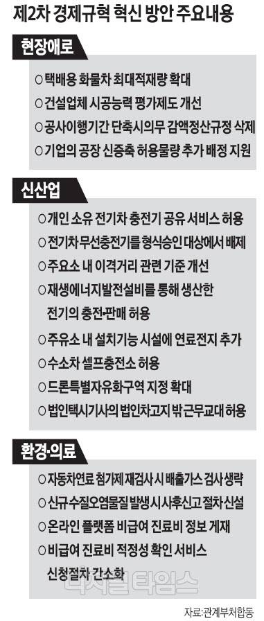 '경제규제 혁신 방안' 발표정부가 기업활동과 밀접하게 관련된 현장 애로사항이나 신산업 성장을 저해하는 규제를 풀고 기업의 투자를 적극 유도하기로 했다.