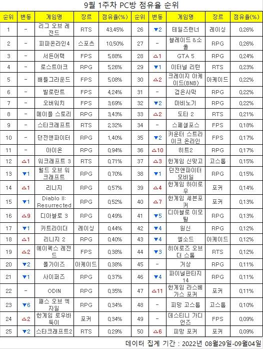 한 주간의 PC방 순위를 되짚어 보고, 어떤 변화가 있었는지 알아보는 'PC방순위' 코너입니다. 데일리게임은 매주 PC방 순위를 일목요연하게 정리, 독자들이 알아보기 쉽도록 제공합니다. 지난 한 주간 어떤 PC 온라인게임들이 눈길을 끌었는지 살펴봤습니다. < 편집자주 >