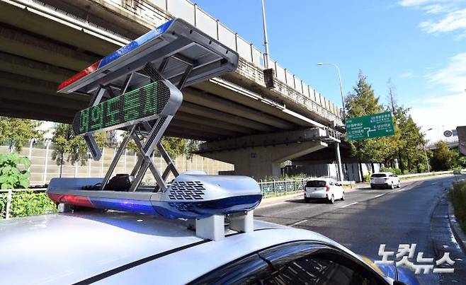 태풍 힌남노 영향으로 한강 수위가 상승해 올림픽대로 가양~동작대교 구간이 전면 통제된 6일 오전 서울 강서구 가양대교 올림픽대로 입구에서 경찰들이 차량의 출입을 통제하고 있다.