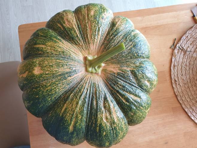 | ▲ 늙은 호박 오늘(6일) 수확한 늙은 호박. 지름이 37cm, 무게가 10kg에 달한다 |