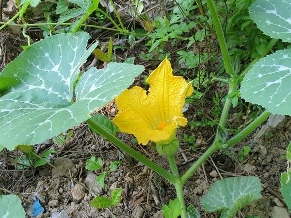 유월부터 장마가 시작되자 호박 줄기들은 하루가 다르게 쭉쭉 뻗어나가기 시작하였습니다. 사람이 떠다 주는 수돗물과 하늘에서 내린 빗물의 양분은 뚜렷한 차이가 있음을 실감하였습니다. 비만 내렸다 하면 하룻 사이 호박넝쿨은 족히 2~3m씩은 자라나는 거 같았습니다. 급기야 조금 지나자 호박넝쿨들은 밭 전체를 뒤덮다 시피하였습니다.