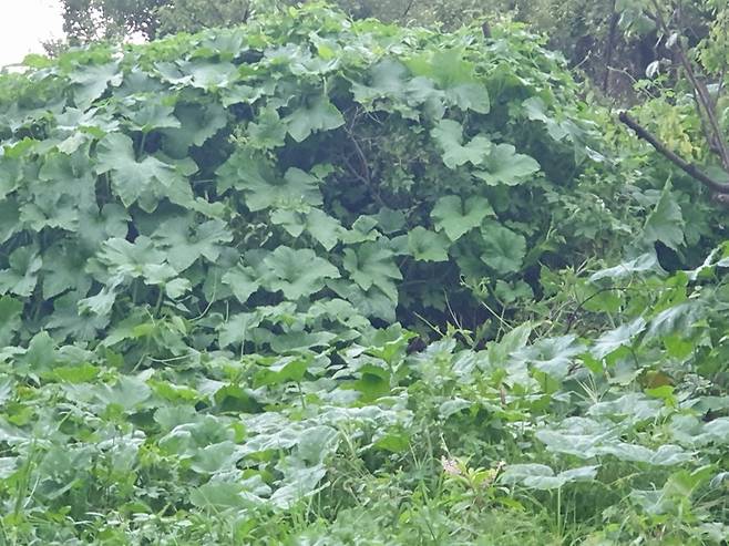 | ▲ 호박넝쿨 밭을 뒤덮은 호박넝쿨 |
