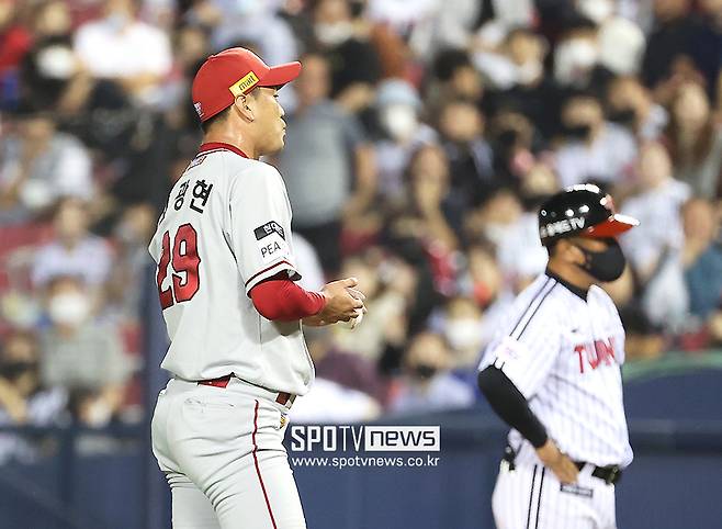 채은성은 고통스러워하며 그 자리에서 넘어졌다. 채은성에게 사과 인사를 하려 했던 김광현은 걸어 나가는 채은성을 바라봤지만 곧바로 교체되며 타이밍을 놓쳤다.