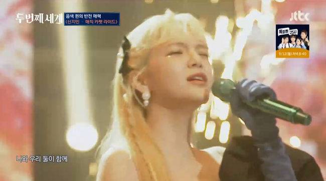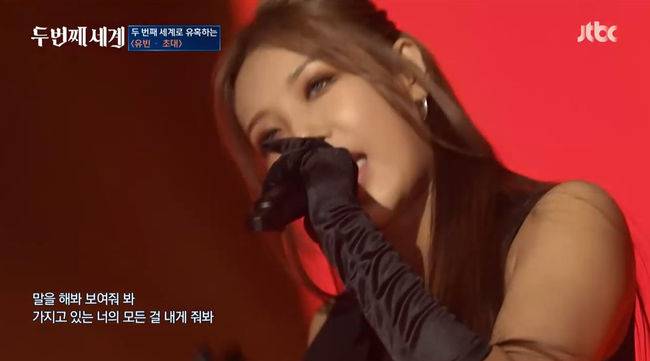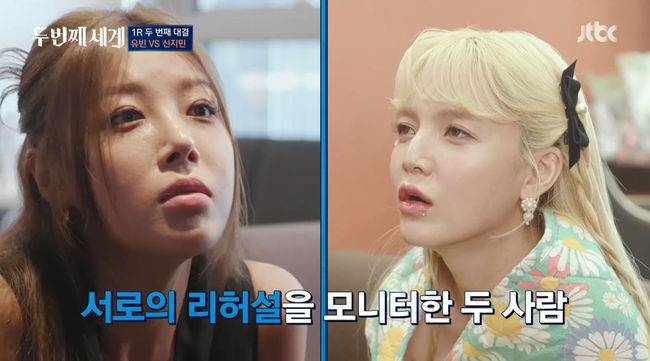 6일 방송된 JTBC '두 번째 세계'에서는 걸그룹 래퍼 유빈,신지민, 문별, 미미, 엑시, 주이, 문수아, 김선유가 1라운드 1대 1 대결을 펼친 가운데 원더걸스 유빈과 AOA 출신 신지민의 대결이 펼쳐졌다.
