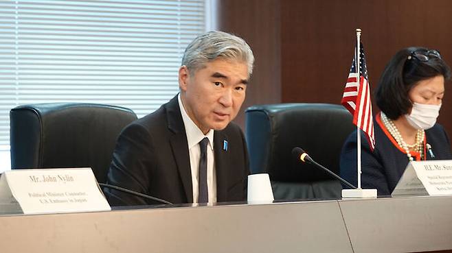오늘 한미일 북핵수석대표 회담에는 성 김 대표와 김건 외교부 한반도평화교섭본부장,후나코시 다케히로 일본 외무성 아시아대양주 국장이 참석했습니다.