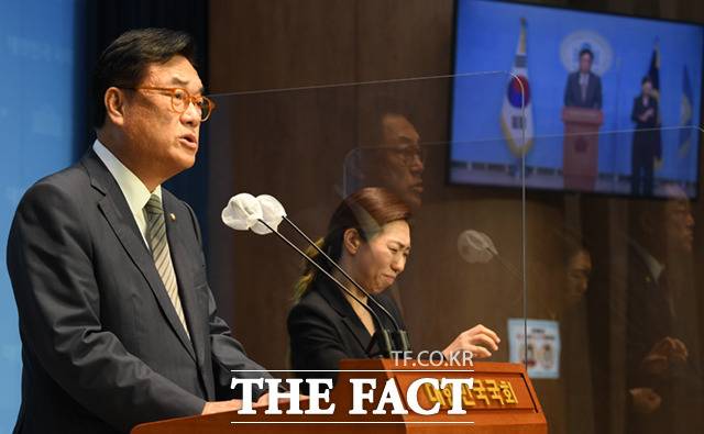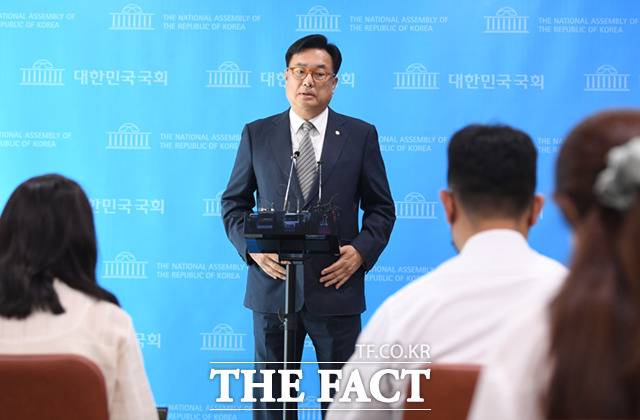 [더팩트ㅣ국회=이새롬 기자] 국민의힘 비상대책위원장직을 수락한 정진석 국회 부의장이 7일 오후 서울 여의도 국회 소통관에서 기자회견을 하고 있다. 정 부의장은 비대위원장을 맡기로 했다고 밝히며 "당을 하루속히 안정화시키겠다"고 말했다.