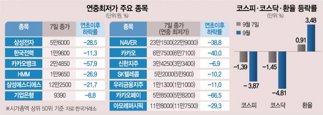 킹달러 태풍에 삼전·카뱅 등 대형주 무더기 연중 최저가