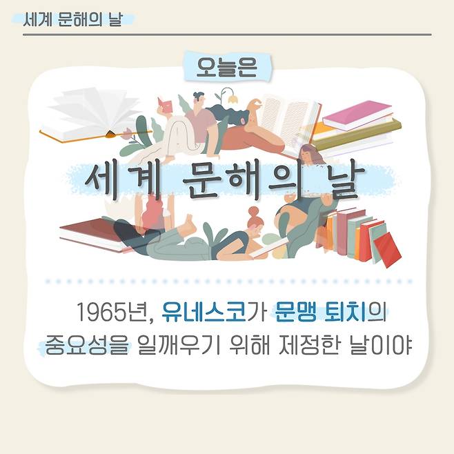 오늘은 유네스코가 문맹 퇴치의 중요성을 일깨우기 위해 1965년 제정한 '세계 문해(文解)의 날'입니다.