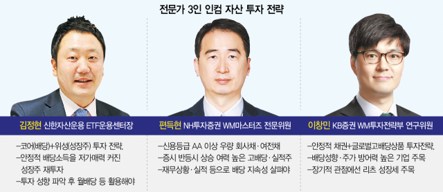 ◇인컴 전략의 기본은 ‘안정성’···우량채·고배당주로 탄탄한 기반 다져야=전문가들은 증시 불황을 버텨낼 인컴 기반을 튼튼히 하기 위해서는 현 투자 상황을 활용한 채권과 글로벌 고배당주를 함께 가져가는 투트랙 전략이 유효하다고 입을 모았다. 주요국 중앙은행들의 긴축 기조 가속화로 채권시장 금리가 급등하면서 채권 이자율 역시 매력적인 수준으로 올라왔다는 판단이다. 특히 가격 변동성 위험이 낮은 단기채와 신용등급이 높은 우량 회사채들의 경우 ‘안정적인 수익’ 기준에 가장 부합한다. 편득현 NH투자증권 WM마스터즈 전문위원은 “인컴 투자 전략에서 가장 키(key)가 되는 것은 채권형 상품”이라며 “국내에서도 신용등급 AA 이상 회사채와 여전채 등은 환율 위험이 없고 부도 위험도 적어 지금 같은 상황에서 투자할 만하다”고 말했다.