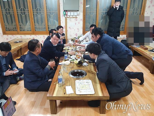 | ▲ 지난 2021년 12월 3일 울산광역시 울주군의 한 식당에서 국민의힘 윤석열 대선후보, 이준석 대표, 김기현 원내대표 등이 만찬 회동(소위 울산회동)을 하며 술을 마시고 있다. |