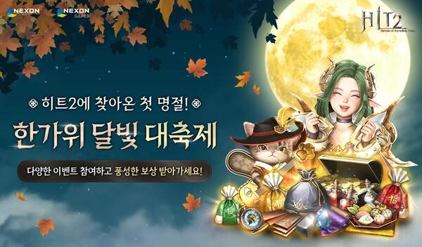 '히트2'는 추석 연휴인 9일부터 12일까지 매일 게임에 접속한 시간대별로 세 차례에 걸쳐 각기 다른 종류의 복주머니와 송편을 제공한다. 복주머니를 열면 골드나 강화서, 신비로운 양피지 등 아이템을 받을 수 있다. 추석 당일인 10일에는 100만 골드와 전투, 방어의 축복서 등이 담긴 파란색 복주머니를 추가로 선물한다.