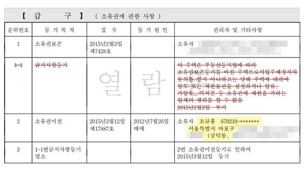2014년 12월, 특공으로 받은 이 아파트가 입주를 시작했습니다. 당시 조 후보자는 기재부에서 경제예산심의관으로 세종시에 근무하고 있었지만 이 아파트에 입주하지 않았습니다. 아파트 등기를 보면 입주 시점 조 후보자의 주소는 서울시 마포구 공덕동의 한 아파트로 되어 있습니다.