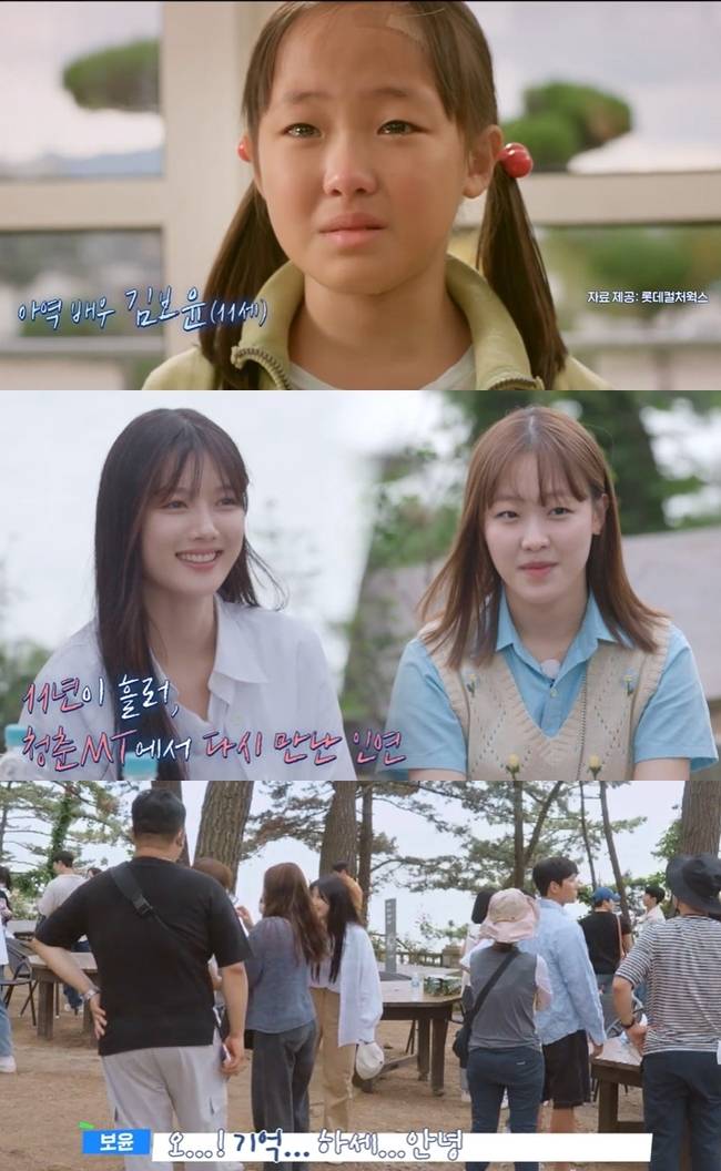 9월 9일 방송된 티빙 오리지널 '청춘MT'에서는 11년 만에 만난 서로를 알아보는 배우 김유정, 김보윤의 모습이 그려졌다.