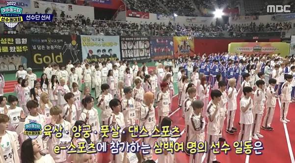 9일 MBC '2022 추석특집 아이돌스타 선수권대회(이하 아육대)' 1부가 방송됐다. 이날 MC로는 전현무, 이홍기, 트와이스 다현이 호흡을 맞춘다. 육상, 양궁, 풋살, 이스포츠, 댄스 스포츠 등 6개 종목에 총 10개의 금메달이 걸린 이번 아육대는 청백전으로 진행된다.