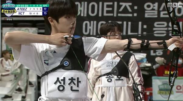남자양궁 결승에선 에이티즈와 NCT가 대결을 펼쳤다. 이날 에이티즈 여상과 NCT성찬이 막상막하 실력을 펼치며 눈길을 사로잡았다. NCT가 기선제압에 나서며 앞서가는 가운데 전통의 강호인 양궁돌 NCT가 주춤한 사이 에이티즈가 4점 차로 바짝 따라 붙으며 한시도 긴장을 놓지 못하게 만들었다. 이날 에이티즈 종호와 NCT의 성찬이 마지막 대결의 에이스로 등장했다. NCT 성찬이 기복 없는 출중한 실력으로 실수 없이 9점을 맞히며 82대 77로 양궁 강자 NCT가 남자 양궁 단체전 금메달을 차지했다.