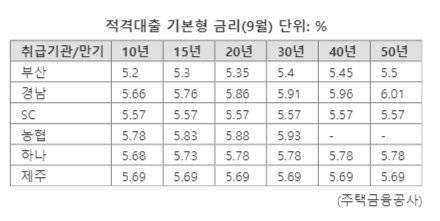 이는 외부 충격에 취약한 단기 변동금리, 일시상환 위주 대출을 장기 고정금리 분할상환 대출로 유도하기 위해 마련됐다. 금리는 기본형 기준 취급기간과 만기에 따라 연 5.20~6.01%로 높은 수준이지만 최근 금리 급등기를 겪으면서 인기가 높아지고 있는 이유다.