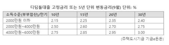 보금자리론은 상품과 만기에 따라 연 4.25~4.55% 수준 금리로 신규 주택 구입, 전세 자금 반환, 기존 주택담보 대출 상환 등에 필요한 자금을 빌려준다. 본인 혹은 부부합산 소득이 7000만원 이하일 경우 이를 이용할 수 있다.
