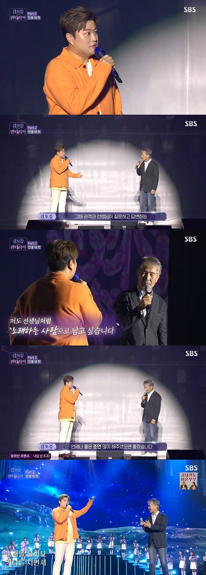 김호중은 "저도 선생님 처럼 그냥 노래하는 사람으로 남고 싶다"며 감사의 인사를 전했다.