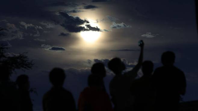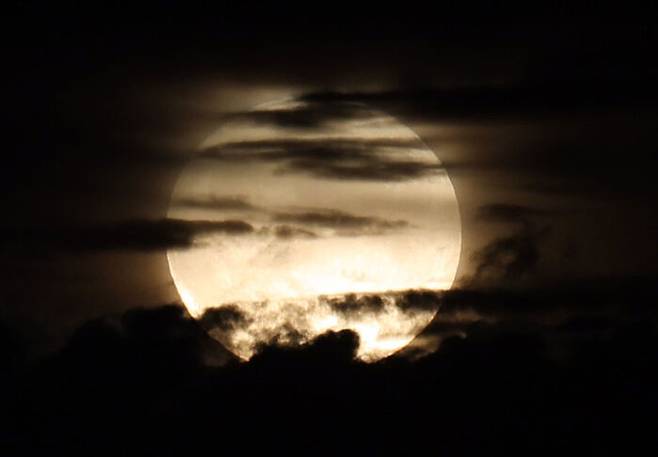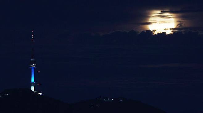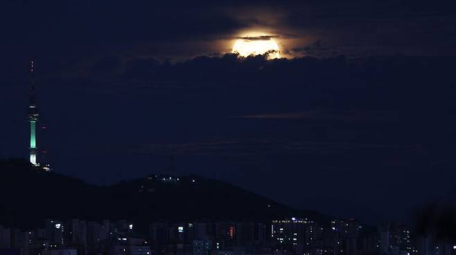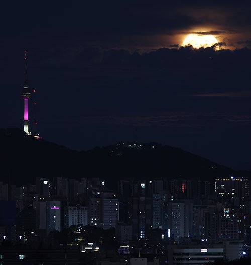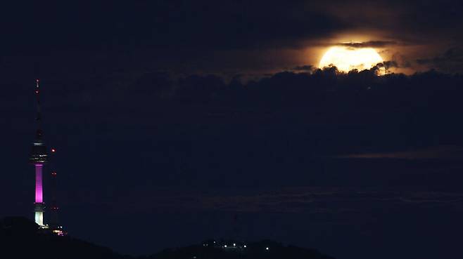 추석인 10일 저녁 보름달이 떠오르고 있다. 이번 추석은 지난 100년 중 가장 둥근 보름달이 떴다.