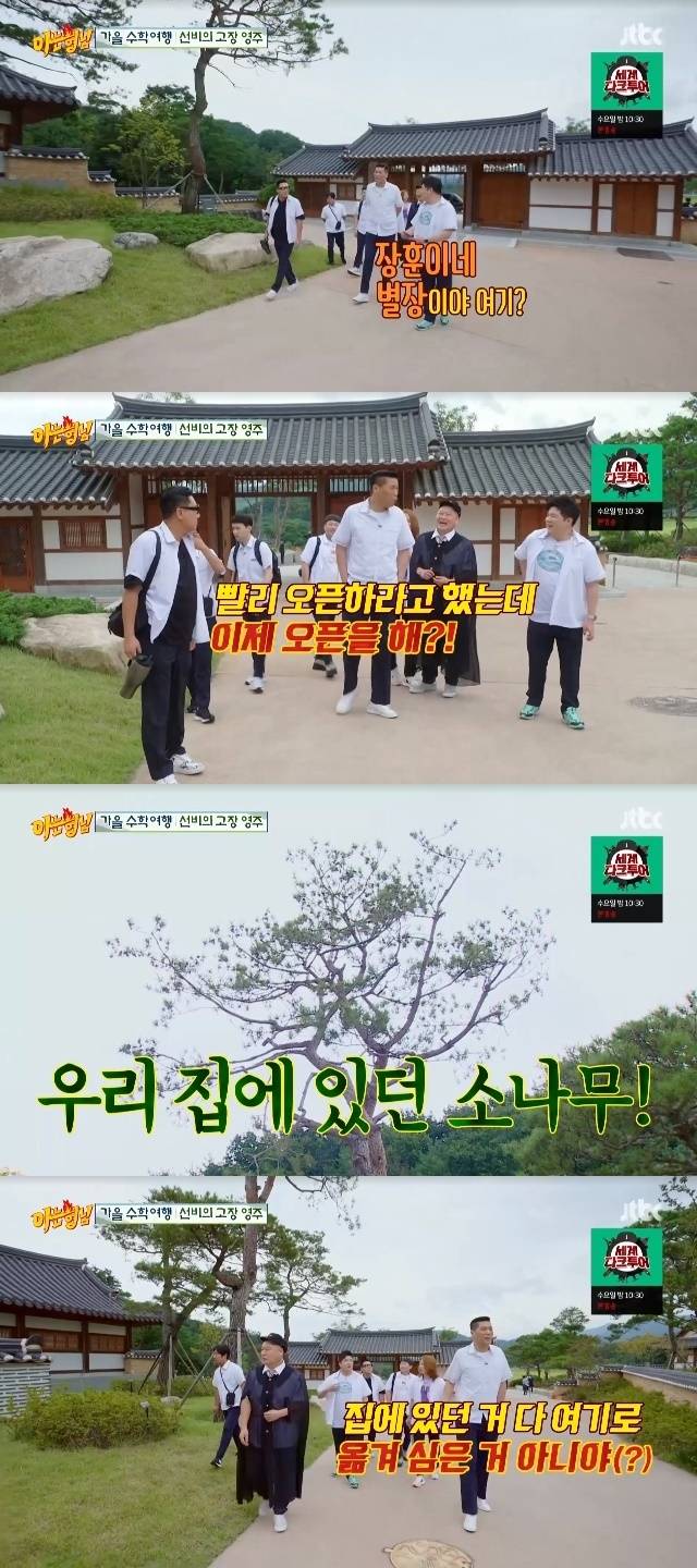 그러던 중 강호동은 "여기가 장훈이 영주 별장이잖나"라고 농담했고, 서장훈은 "빨리 오픈하라고 했는데 이제 오픈을 해? 이것들을 그냥"이라며 받아줬다.