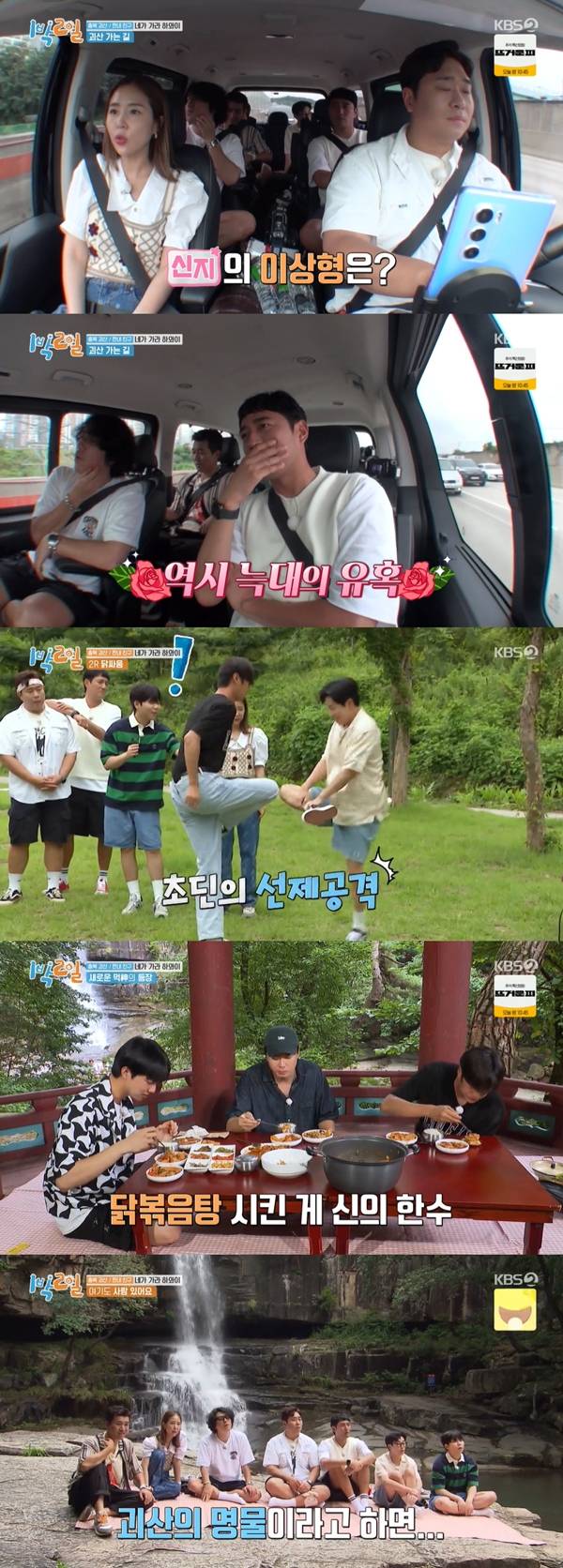11일 방송된 KBS 2TV '1박 2일 시즌4'(이하 '1박 2일')에서 '찐친' 특집으로 꾸며져 멤버들과 그들의 친구들이 함께 충북 괴산으로 떠났다. 괴산으로 향하는 차 안에서 각 팀은 이야기꽃을 피웠다.