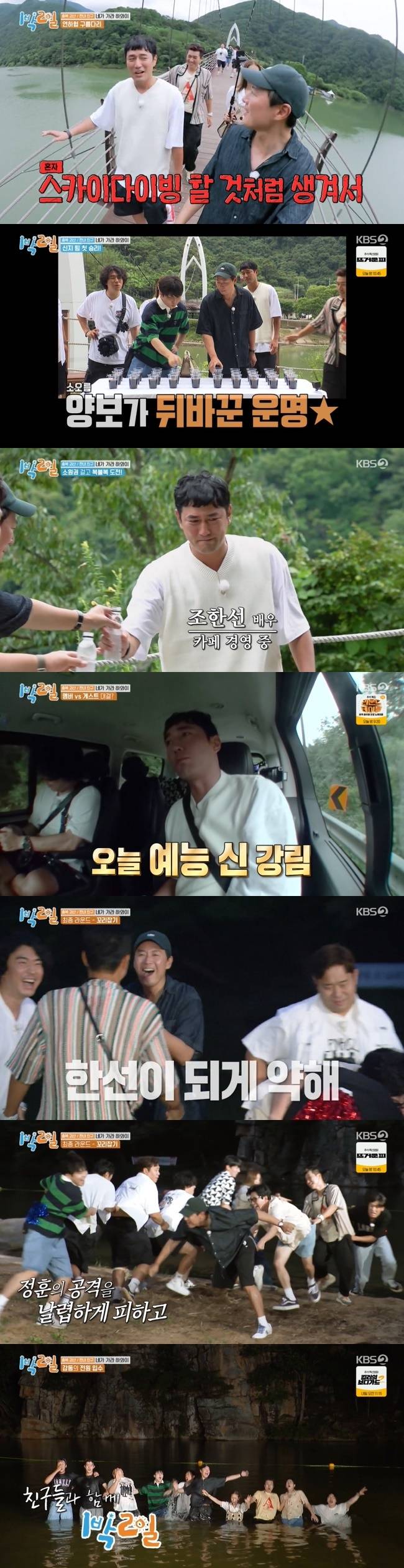 조한선, 복불복 불운+몸개그까지 예능신 강림→친구들과 전원 입수(1박2일)[어제TV]