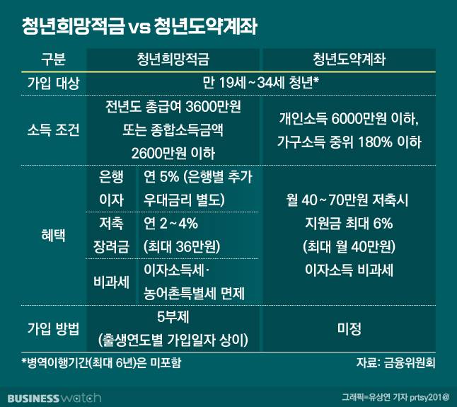 금융위 관계자는 "지난해 소득이 최초로 발생한 청년 중 청년도약계좌 가입기준을 충족하는 청년들은 청년희망적금 대신 내년 중 출시되는 청년도약계좌에 가입할 수 있을 것"이라며 "세대 내 형평성 우려를 방지하기 위해 지원 수준은 소득별 차등을 두도록 할 것"이라고 말했습니다.