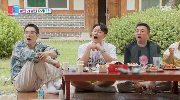 식사 준비의 1등공신이었던 강재준과 자이언트 핑크 남편 한동훈에게 이지혜는 "남편들 고생했다"라며 "근데 평소에 집에서도 요리 많이 해요?"라고 물었다. 이에 강재준은 "예, 뭐 잘 안합니다"라고 답했고, 이은형은 "일절 안해요, 일절"이라며 "식당을 해서 그런지 밖에서 하던 일을 집까지 와서 하기 싫어서 안하나봐요"라고 핀잔을 줬다. 이에 심진화는 "핑계 아니야?"라 물었고, 강재준은 "입금이 되어야 요리하는 스타일"이라며 스스로를 보호했다.