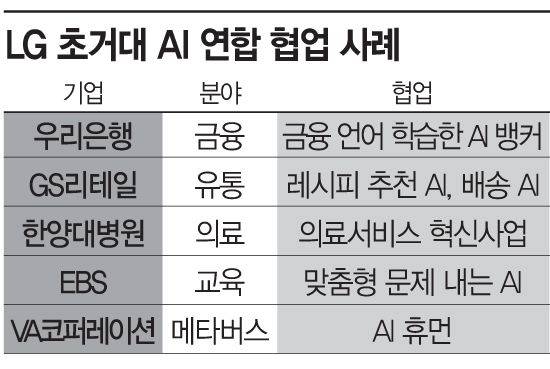 초거대 AI 활동 영역은 더 넓어지고 있다. 13개 기업체가 참여한 '초거대 AI 연합'을 통해서다. LG AI연구원은 구글, 우리은행, GS리테일, 한양대병원, EBS 등 다양한 산업군과 손을 잡았다. 파트너사들이 데이터를 제공하면 연구원이 분야별 AI를 생성한다.