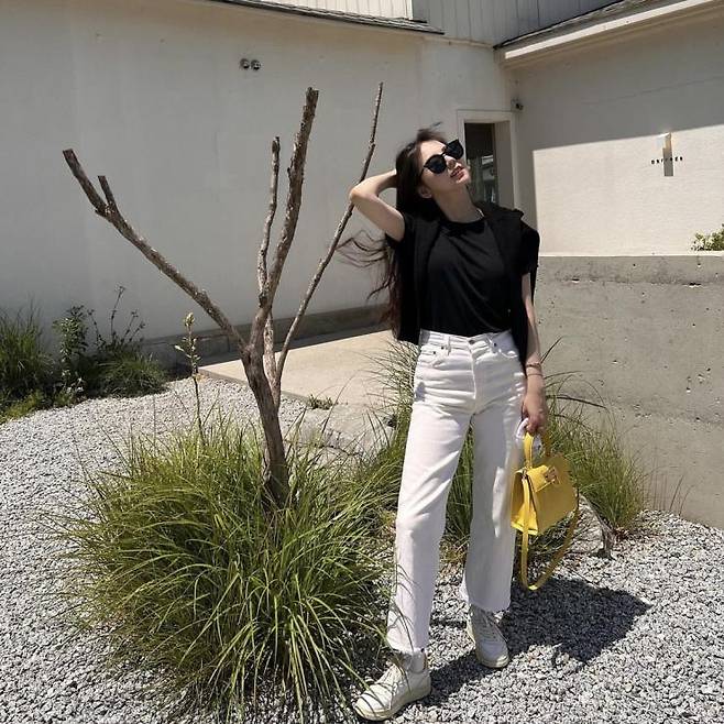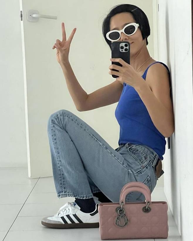 김나영의 선택은 아디다스의 삼바 비건 모델. 화이트 컬러에 스웨이드 앞코가 캐주얼한 옷차림에 어디든 잘 어울릴 디자인입니다. 이 모델은 특히나 최근 구찌다스콜라보슈즈를 연상시키죠?