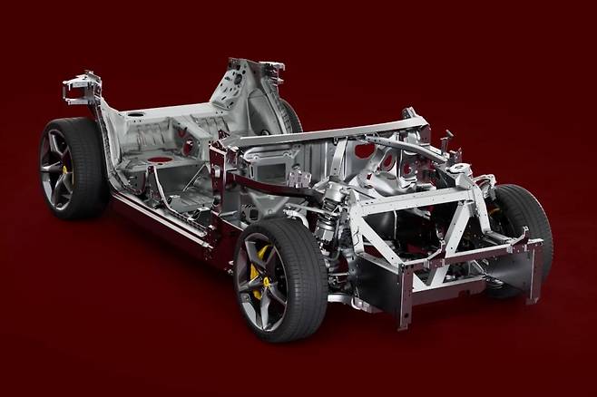 그 결과 섀시는 더 커졌지만 무게는 페라리의 이전 4인승보다 가벼워졌다. 비틀림 강성은 30%, 빔 강성은 무려 25%나 올랐다. 이는 NVH 특성을 개선해 도로 표면 요철을 부드럽고 조용하게 흡수해 편안함을 높이고 역동적인 주행에서는 차체를 단단하게 잡아준다.