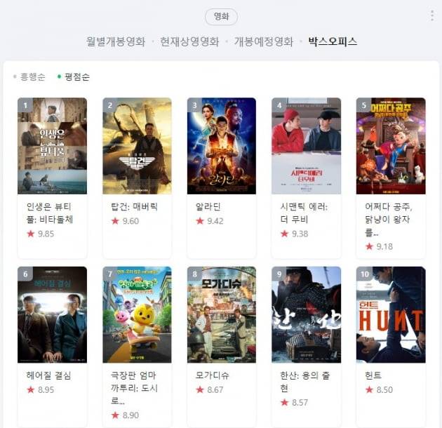 네이버 평점 9.85로 평점순 영화 전체 1위