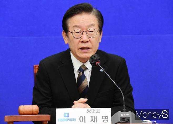 이재명 대표가 14일 서울 여의도 국회 본관 206호에서 열린 더불어민주당 최고위원회의에 참석, 발언하고 있다.