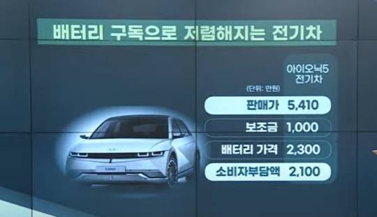 아이오닉5 차값 약 2천만원 + 배터리 구독료 월 30만원