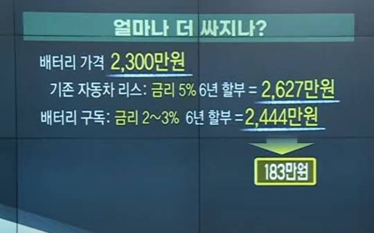 이 기준으로 기존처럼 전기차를 살 때와 배터리 구독 서비스로 살 때를 비교해 보면요.