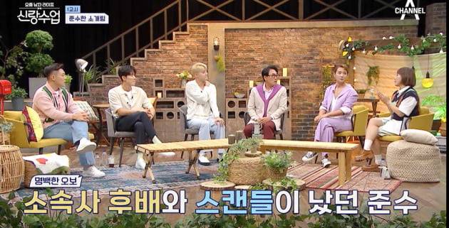 이승철은 어리둥절해했고 신봉선은 "준수가 얼마 전에 후배 친구와 스캔들이 났었다"고 설명했다. 김준수는 러블리즈 출신 케이와 열애설에 휘말렸던 바. 빠르게 열애설을 부인했다. 이승철은 "식구끼린 좀 그렇지"라고 해 웃음을 안겼다.