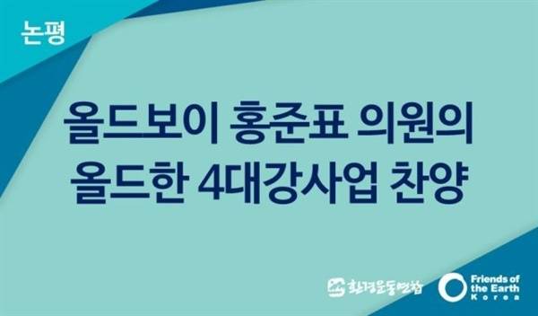 | ▲ 권성동 원내대표의 주장은 이미 과거에 언론과 환경단체에 의해 조목조목 반박되었다. 환경운동연합은 권 원내대표와 비슷한 주장을 한 홍준표 당시 무소속 의원에 대해 2020년 8월 8일, "올드보이 홍준표 의원의 올드한 4대강사업 찬양"이라는 제목의 논평을 통해 홍 의원의 주장을 반박하고 비판했다. |