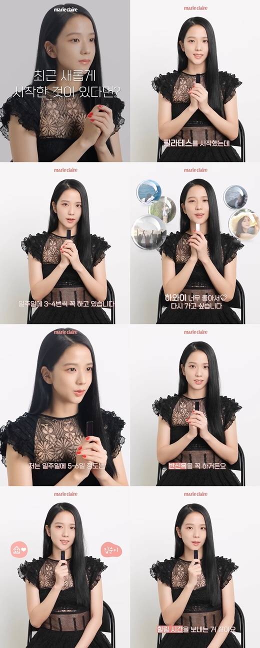 휴일에 시간을 보내는 방법도 언급했다. 지수는 "맛있는 저녁을 먹는다든지 아니면 집에서 하루종일 뒹굴뒹굴 한다든지 보고 싶었는데 못 봤던 영화나 드라마도 보면서 시간을 보내는 것 같다"며 본인을 '집순이'라고 칭해 눈길을 끌었다.