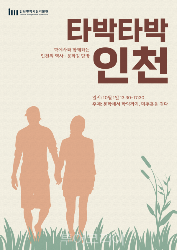 인천광역시는 10월 1일부터 인천의 숨은 역사 길을 찾아 나서는 성인 대상 도보 답사프로그램인 '타박타박, 인천'을 운영한다.'타박타박, 인천'은 우리 동네 인천 곳곳의 문화유산과 길과 거리를 속속들이 탐방하는 도보 답사프로그램으로, 이번에 진행되는 '문학에서 학익까지, 미추홀을 걷다'는 미추홀구 일대의 문화유산을 직접 눈으로 보고 느낄 수 있는 시간이 될 예정이다.