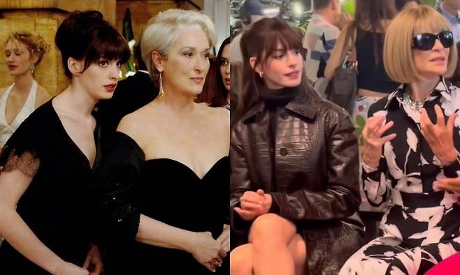 할리우드 스타 앤 해서웨이가 '악마는 프라다를 입는다' 실제 주인공 옆에 앉았다.