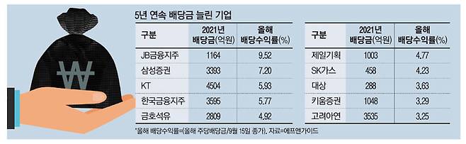 - 5년 연속 배당금 늘린 상장사 60곳…1등은 어디?