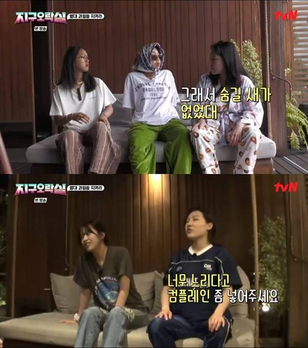 한편 이날 방영된 <지구오락실>에선 다채로운 미방분이 속속 공개되었는데 그중 가장 인상 깊었던 내용은 다름 아닌 첫 회식 장면이었다. 본격적인 현지 촬영 돌입에 앞서 국내에서 진행된 제작진과 멤버들의 간단한 술자리가 화면에 담겼다. 아직 서로에 대해 낯설고 약간의 경계심이 있던 상황에서 특히 과거 아이즈원, 현재의 아이브 등 그룹 멤버들 없이 예능에 나서게 된 안유진으로선 부담이 컸던 모양이었다.