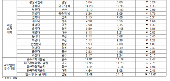 지방대는 경북대·전북대 제외하고 대부분 하락