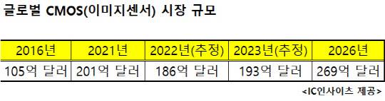 CMOS 이미지 센서란 카메라에서 사람 눈의 망막처럼 이미지를 포착하는 역할을 하는 장치로, 스마트폰 화질 경쟁과 자율주행차 시장 성장, 사물인터넷용 가전제품용 탑재 증가 등에 힘입어 2016년부터 2021년까지 매년 두 자릿수의 성장률을 기록했었다.