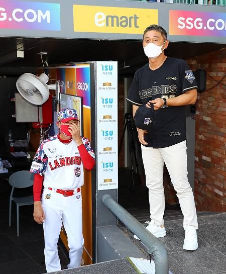 마침 이날 레전드 40인 트로피 시상을 김원형 감독이 했다. 본래 김 감독이 직접 할 계획이 없었지만, 김 감독이 자청했다. 두 사람은 1972년생 친구이자 쌍방울, SK 시절까지 ‘영혼의 배터리’였다. 김 감독은 이날 인천 두산전을 앞두고 “오랜만에 경완이를 보게 됐네요”라고 했다.