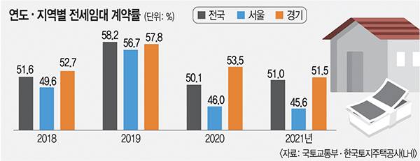 18일 국토교통부에 따르면 지난해 LH가 주관한 전세임대사업 대상자로 선정된 이들 중 실제 계약까지 진행한 이들은 51.0%에 불과한 것으로 확인됐다. 전세임대사업 신청자 중 소득, 나이, 부양가족 등의 요건을 충족해 입주 안내를 받은 사람 중 절반 가량이 계약을 포기했다는 의미다.