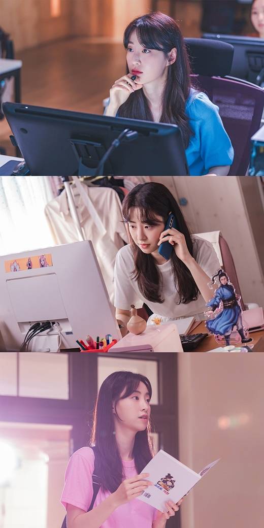 ‘구슬아’는 섬세하고 아름다운, 그림을 잘 그리는 웹툰 작가 지망생 캐릭터입니다. 그래서 촬영 전 태블릿 사용법을 익힌다고 나름 했는데도 막상 촬영을 들어가니 생각했던 것보다 어려워서 애를 먹었어요 . 첫 촬영이 끝나고 도움 주시는 웹툰 작가님을 다시 찾아가 태블릿 키보드 컨트롤이나 프로그램 도구들을 이용해 그림을 그리는 방법도 자세히 배웠죠 . 촬영 중간중간 틈틈이 그림 그리는 연습도 게을리하지 않았고요. 그리고 ‘구슬아’ 작가의 고민인이루고 싶은 꿈과 취업이라는 현실의 벽에서 고민하고 갈등하는 모습을 많은 분들이 공감하셨을 거라 생각해요. 어쩌면 모두가 인생을 살면서 한 번쯤은 겪었을 선택의 고민에 대해 시청자분들이 ‘구슬아’를 보며 공감과 위로를 받았으면 하는 마음이 컸던 것 같아요. 그래서 대사 하나 하나에도 진심을 다하고 눈빛과 호흡으로 최대한 캐릭터의 감정을 표현하기 위해 노력했습니다.