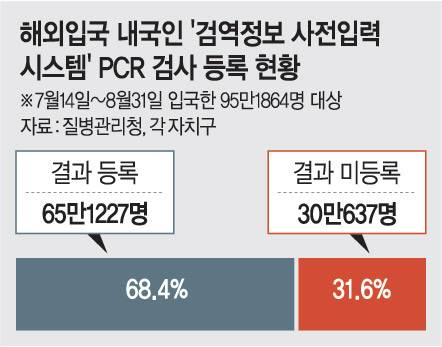 19일 질병관리청에 따르면, 지난 7월 14일부터 8월 31일까지 검역정보 사전입력시스템(큐코드·Q-code)에 등록된 내국인 해외 입국자 95만1864명 중 31.6%(30만637명)가 PCR 검사 결과를 등록하지 않은 것으로 나타났다. 해외 입국 시 1일 이내 PCR 검사를 의무적으로 받고, 결과를 큐코드에 입력하는 것을 권고하고 있지만 10명 중 3명은 하지 않은 것이다.