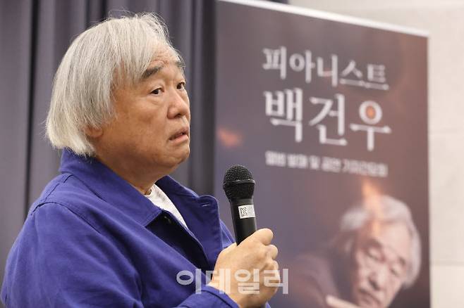 [이데일리 이영훈 기자] 피아니스트 백건우가 19일 오후 서울 서초동 스타인웨이 갤러리에서 열린 '그라나도스-고예스카스' 앨범 발매 및 공연 기자간담회에서 발언을 하고 있다.